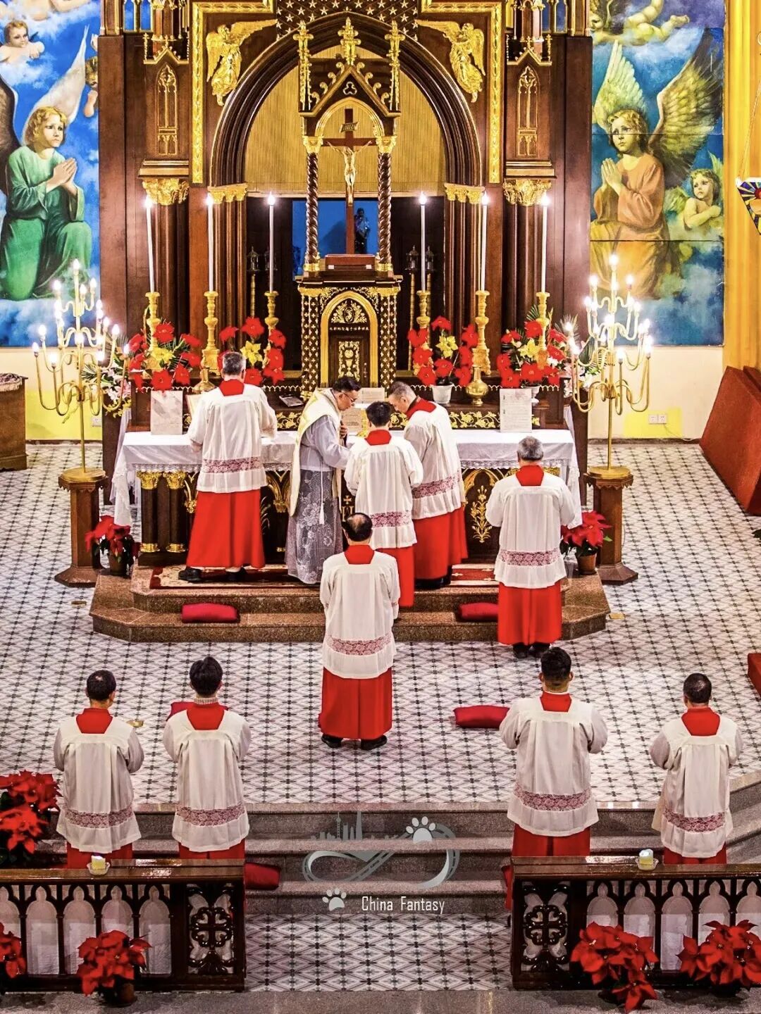 每一次在弥撒的开始,共祭的神父,包括执事,都会先到祭台(祭坛)前面,向祭台鞠躬,然后走到祭台,口亲祭台。而主祭则会在祭台前面向祭台鞠躬之后,再走到祭台中央,面向祭台,口亲祭台。为一些人来说,可能会感觉这种做法很奇怪。因为祭台的材质是石头或木头的,乍一看很难理解我们这样做的深意是什么,好像并不需要给予它特别的敬意。