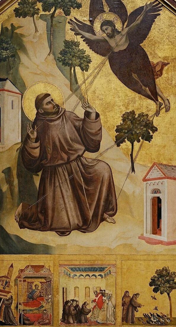 1224年,方济各在亚尔未纳山祈祷时,获赐五伤的印记,成为历史上第一位有记载的圣伤获得者。从他开始,直到今天,已经有超过300人确证身负五伤。