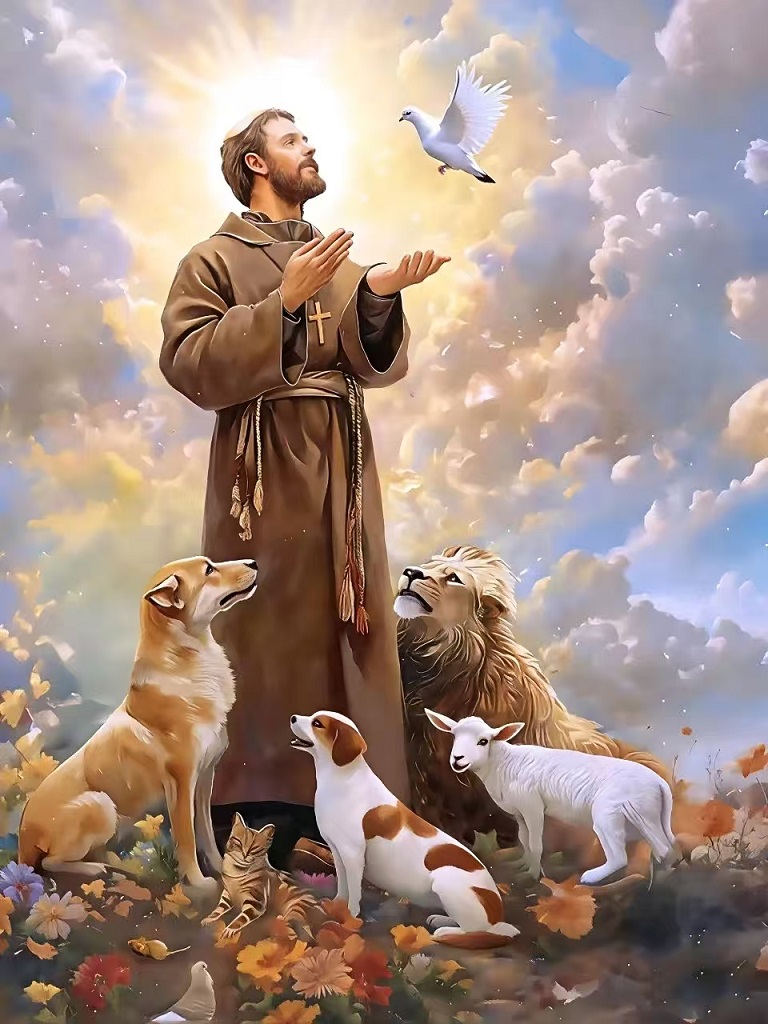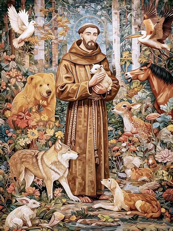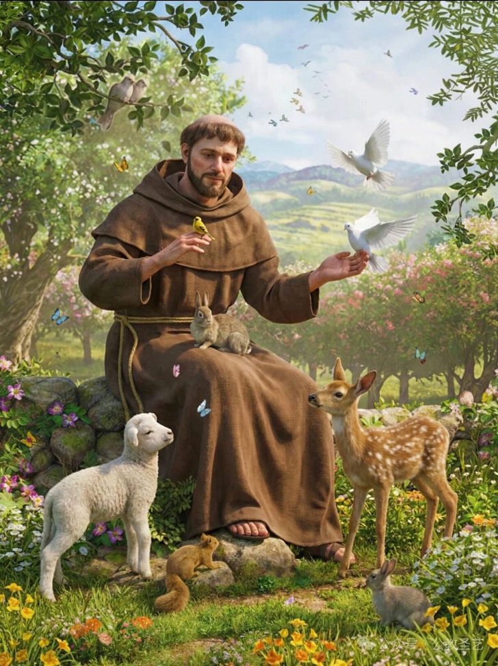 他对受造界的爱在历史中独树一帜,他称太阳为“兄弟”,月亮为“姐妹”,甚至向鸟儿讲道。在他身上,我们似乎看到了亚当未曾堕落的样子,天与人和睦相处,大自然的一切都彼此相爱。