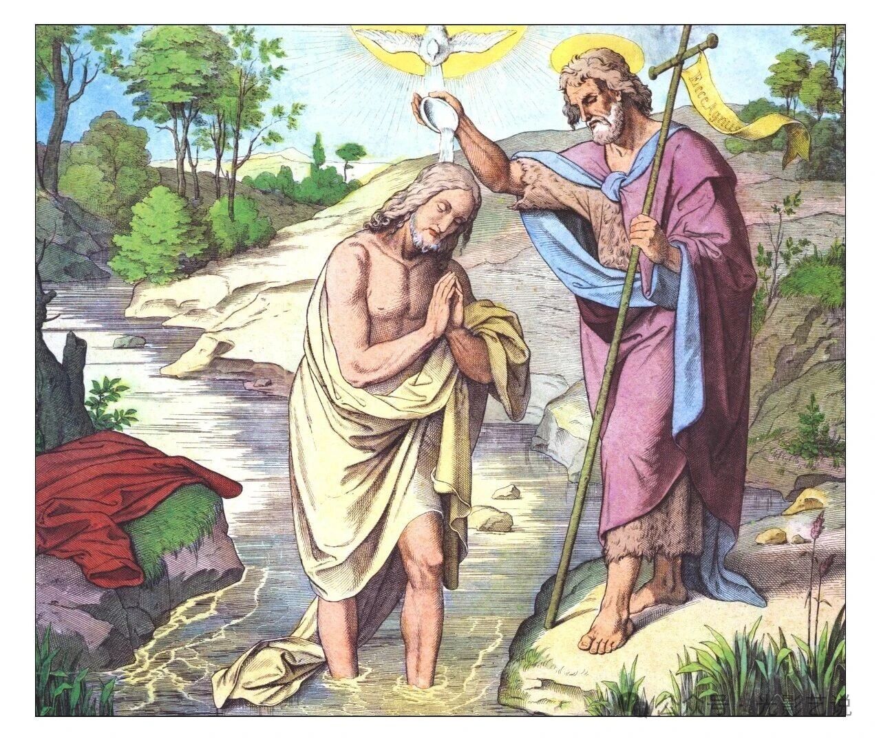 耶稣受洗后,立时从水里上来,忽然天为他开了。他看见天主圣神有如鸽子降下,来到他上面;又有声音由天上说:「这是我的爱子,我所喜悦的」(玛3:16-17) 耶稣的公开生活,是他在约但河接受若翰施洗时开始的。……圣神藉鸽子的形象,停在耶稣身上,「并有声音从天上」说:「这是我的爱子」。这显示出耶稣是以色列的默西亚和天主子。〔《天主教教理》(1992),535条〕