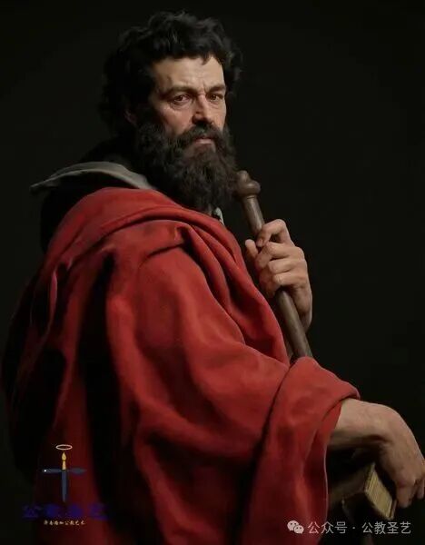 大雅各伯的装束简约而不失庄重,拐杖则象征着他的坚定与支撑。在圣经的记载中,大雅各伯的身影总是与信仰、朝圣和使命紧密相连。